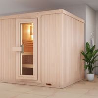 Ohne Saunaofen: Wir empfehlen einen Ofen mit einer Leistung von 8 KW. Diese können Sie als Zubehör zu diesem Produkt dazu bestellen.